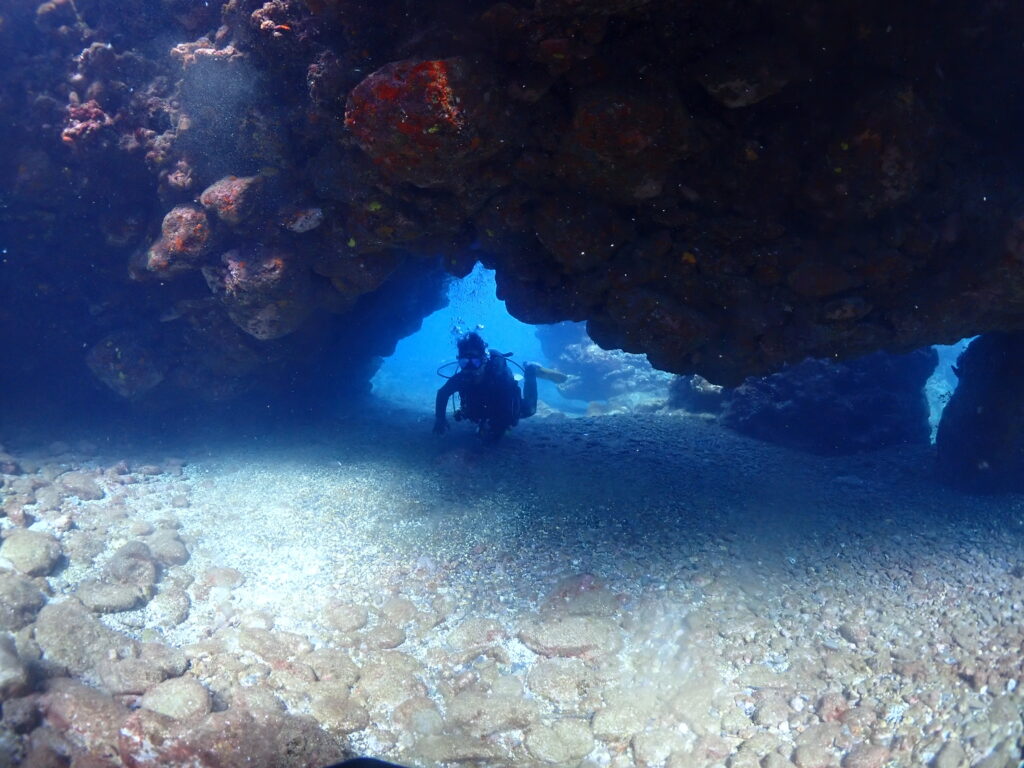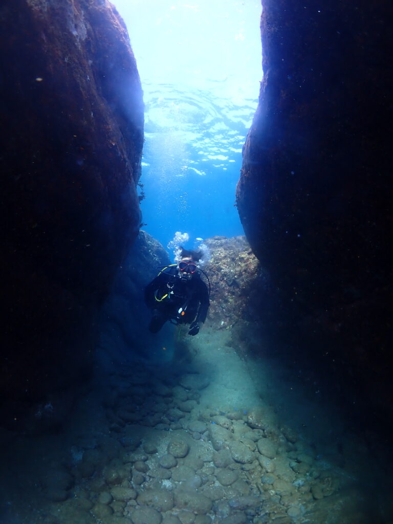 亀裂を抜けたり、ホールを抜けたり、講習にはなかったようなアドベンチャーダイブ!