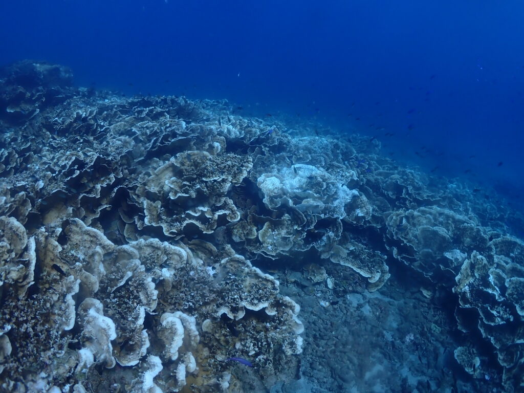 もっと生き生きしたサンゴを見てもらいたかったけど、高水温が続き一部白化しています。