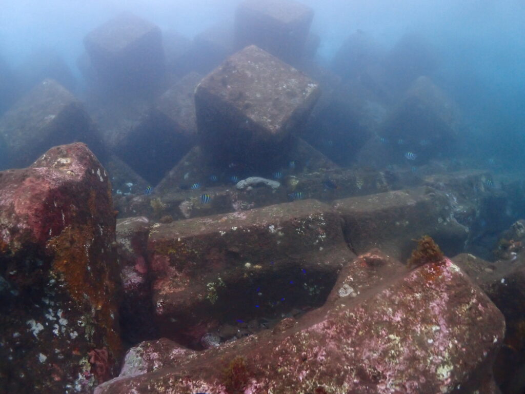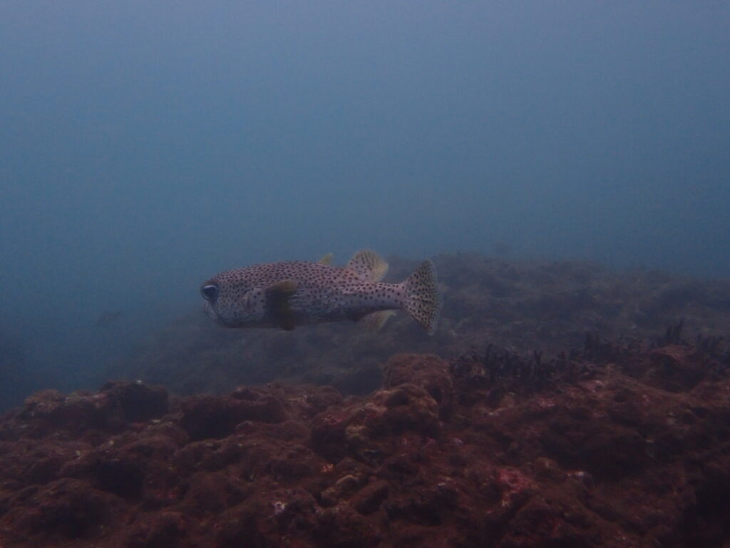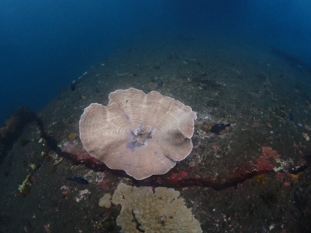 メインダイブ、水中は暗めですがお魚は普通に泳いでいるしサンゴもいつも通り見れます。