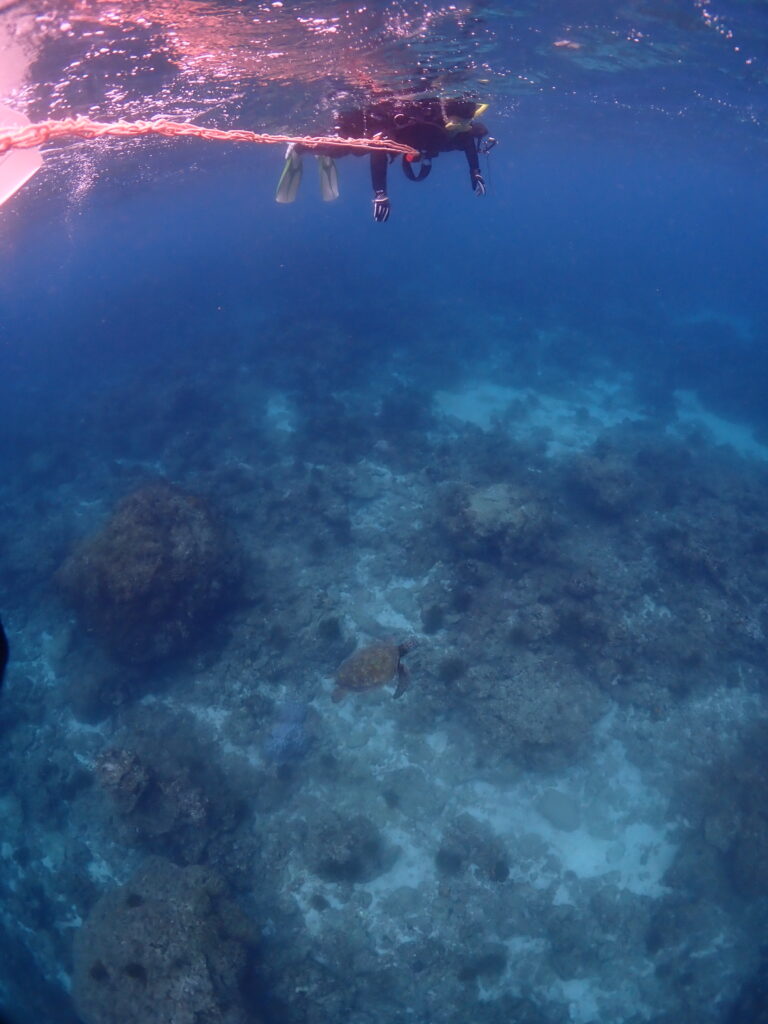 ウミガメ発見です!!お客様の真下をゆっくり泳いでいます!!