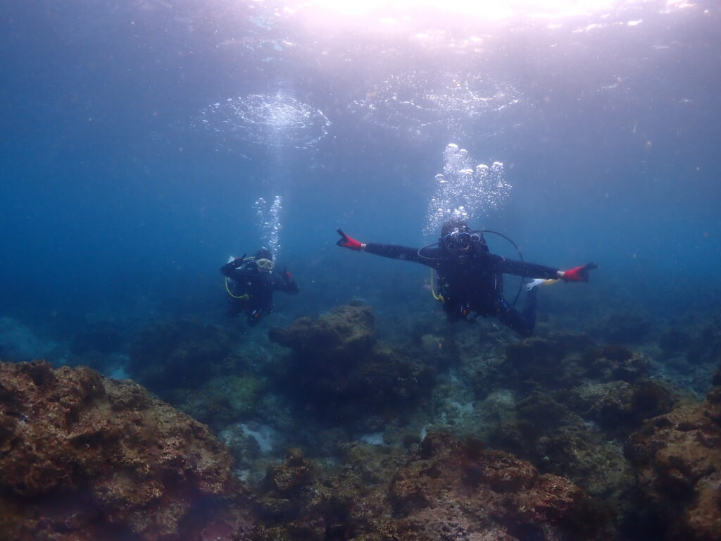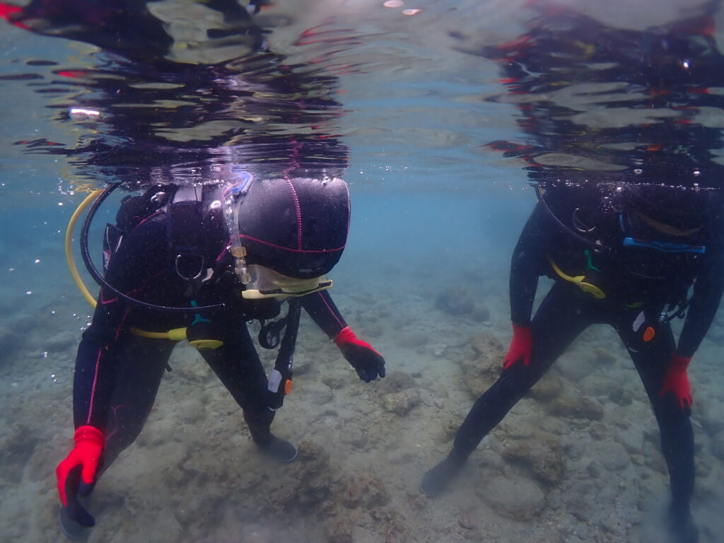 きちんと必要なスキルを練習する1ダイブ目・しっかり遊び時間の2ダイブ目、二部構成の安心設計になっており、当店お勧めコースです!