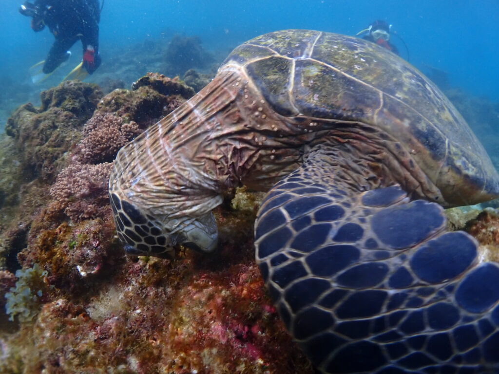 ご飯モードのウミガメをしばらく観察する私達。