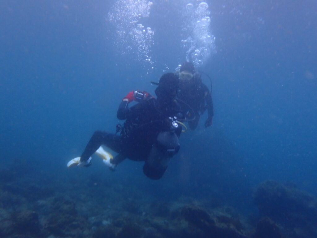 1ダイブ目の後半では私の指示がなくても自分の判断で器材操作を行えるようになります。